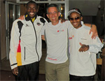 Montag, 11. Mai, der große Tag. Ich hatte mir zwei Tage Urlaub gegönnt, denn wann erlebt man mal so etwas? Kurz vor drei Uhr nachmittags klingelt es und nach einem „Welcome, Kikuyu!“, was direkt den ersten Lacher provoziert, kommen die Drei über unsere Schwelle. Welch ein Kontrast: Rabenschwarzen Menschen mit blinkenden Zahnreihen in weißen Trainingsanzügen.