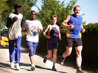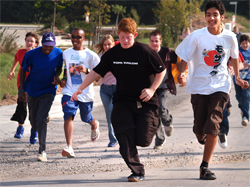 Mit den Jugendlichen lief er ein paar Runden.