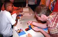 Nach der Lesung, wollen alle Zuhörer ein signiertes Buch von Henry